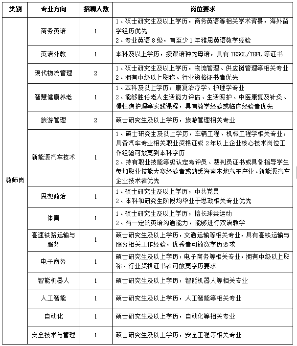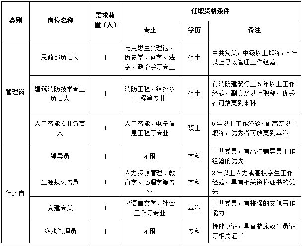 1、招聘条件:硕士及以上学历,中级以上职称或三年以上相关企业工作经验且具有相关职业资格技能证书,可放宽学历要求。
